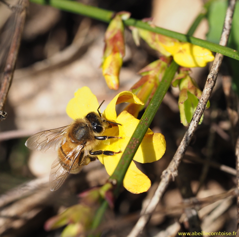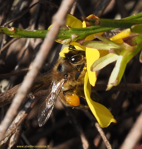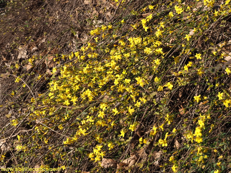On récolte aussi du pollen sur le jasmin d'hiver: