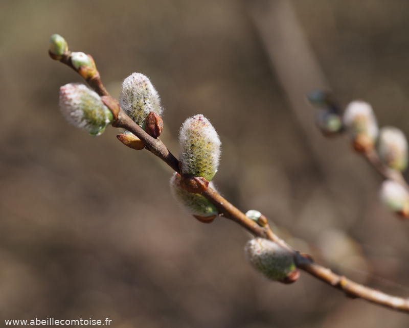 Salix cinerea. Hôte des milieux marécageux, cet arbrisseau très répandu en Franche-Comté, fleurit en mars en avril. Sa taille ne dépasse pas deux mètres.